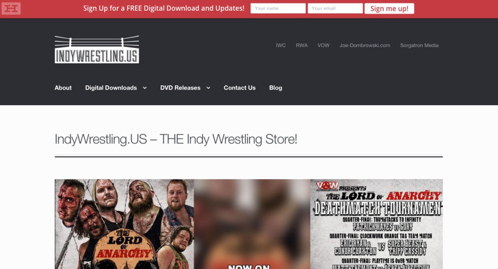 IndyWrestling.US is an eCommerce site from Sidekick Media, dedicated to independent professional wrestling. I was given the opportunity to create the logo and the initial design for the site, which has only grown since!